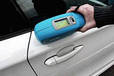Für eine farbgenaue Lackierung findet die Farbtonfindung mittels Farbmesscomputer direkt an Ihrem Fahrzeug statt. So kann die spezifische Farbnuance, die aufgrund von Serienstreuung oder altersbedingten Farbtonveränderungen stark variiert, optimiert werden, um so das bestmögliche Ergebnis zu erzielen.